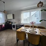 A fully furnished kitchen is featured with a microwave, a refrigerator, and kitchenware, as well as tea and coffee-making facilities, ensuring a better dining experience. If you have an early flight from Ostroda, the 100 m^2 apartment is located 115 km from Szczytno-Szymany International airport. The availability of a Jacuzzi allows guests to have a more relaxing stay.